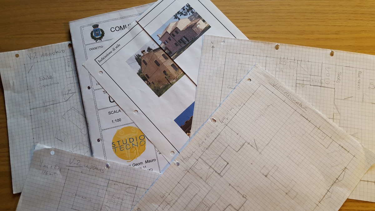 We stared with incredulity at the sum scrawled in Mauro’s flamboyant hand across the corner of the drawing that covered his glass-topped desk. Mr Blue-Shirt tapped out sums on his calculator while I tried to follow Mauro’s rapid-fire explanation of the figures he had just presented us with. It felt as if we had just been shoved off a cliff and were now free-falling into an abyss. As the sheer cliff-face streaked up past us and the sky shrank to a narrow blue slot, our brains struggled to process the implications of what we had just heard. A couple of seconds later we hit the ground with the unyielding thud of realisation. It was no longer viable to build a house on our plot of land.
