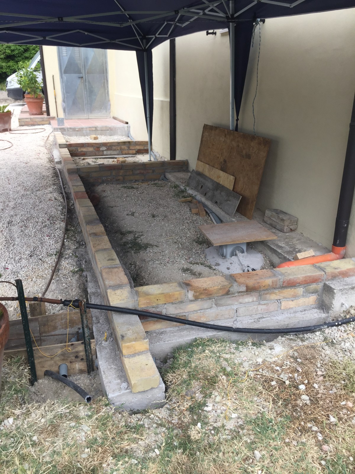 There has been no stopping Mr Blue-Shirt. Since he finally cracked the ‘fai da te’ puzzle, he has been putting together an ever-expanding web of equipment hire places, local suppliers and tool shops, and so there is now almost no job that will defeat him for want of the right materials or the right gadget. And this network has already enabled him to make great strides with building the terrace that is beginning to wind its way around the house.
