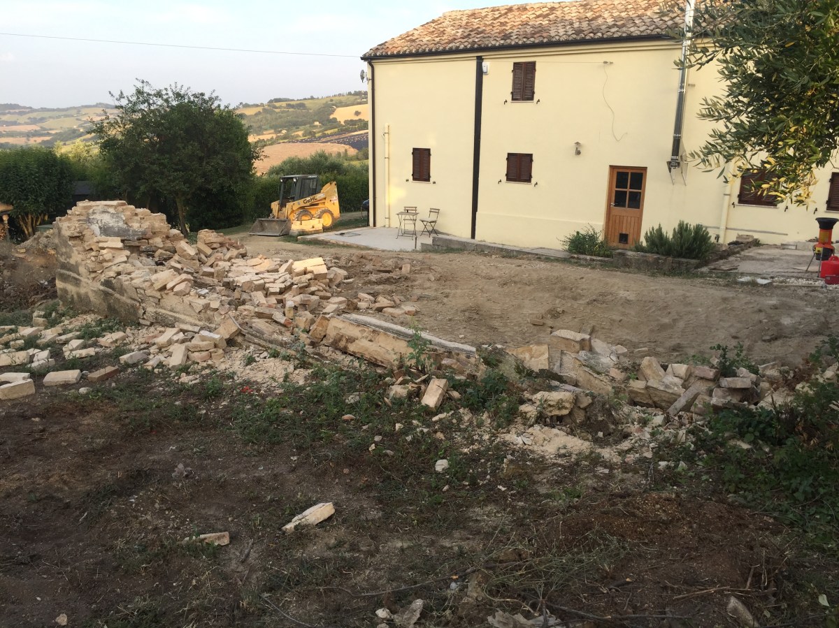 Although Mr Blue-Shirt had sent me twice-daily photo updates on his progress while I was in the UK and given me and blow by blow accounts over the phone, they still hadn’t truly prepared me for the reality that greeted me when I returned home. I stood at the back door, my suitcase still in the middle of the kitchen floor and the cats weaving about my legs, and looked out towards where the decrepit and toxic pigsty had once stood on the slight rise to the rear of the house. When I left, all the makeshift cladding had long since been ripped off, Mr Blue-Shirt had carefully taken down one and a half outside walls and all the internal dividing walls brick by brick, salvaging all the materials for use elsewhere. He had removed the large curved coppi roof tiles from half the roof and stacked them on a pallet, and many of the timber uprights and beams had been removed and then stowed in the legnaia (woodstore) for chopping into firewood. It was still recognisably the loathsome pigsty, however, albeit a mortally wounded version of its former self. But now – at last – it had gone. Completely gone. Disappeared. Not a single brick or beam or roof tile remained. Nothing. Just a bare patch of roughly levelled soil in front of the previously almost invisible pair of tall olive trees up by the front fence, and beyond it a newly revealed view of the uphill section of the field that surrounds the house. I could now see on to the trees that line the lane running down the valley, then over the road that runs up into the village to the tops of our neighbours’ olive trees and finally round to the western sky from where the late afternoon sun cast its slanting rays through the line of olive trees along our northern border that I had never seen from this angle.